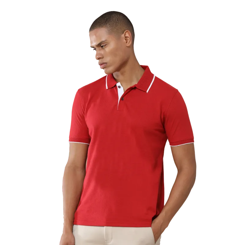 Heather Red Jacquard Polo